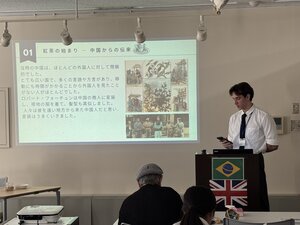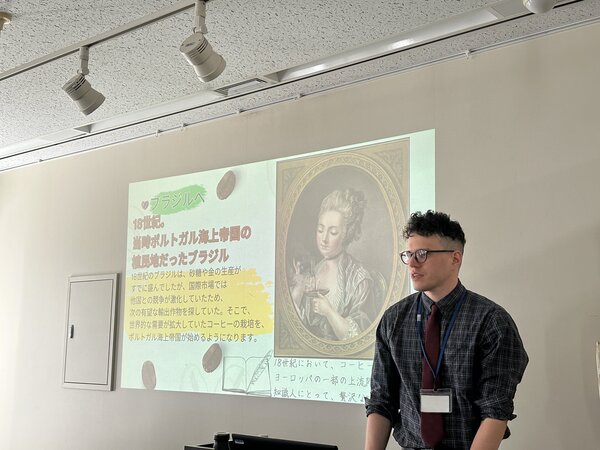 イベントでは、ブラジル出身の国際交流員がコーヒー文化とその歴史について紹介し、参加者にはポルトガル語でコーヒーを注文し、実際に試飲していただく体験を提供しました。