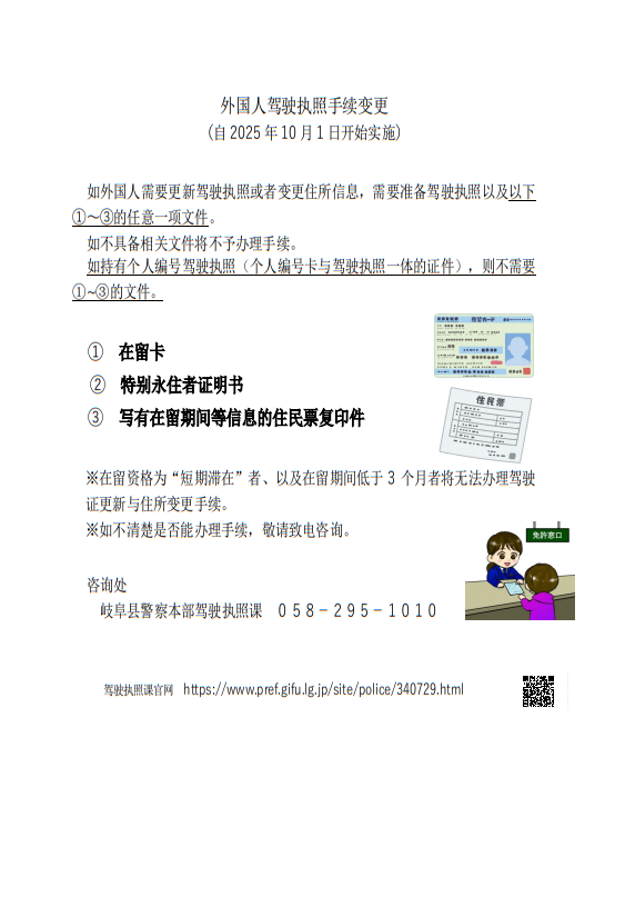 如外国人需要更新日本的驾驶执照或者变更住所信息,需要准备驾驶执照以及以下任意一项文件。