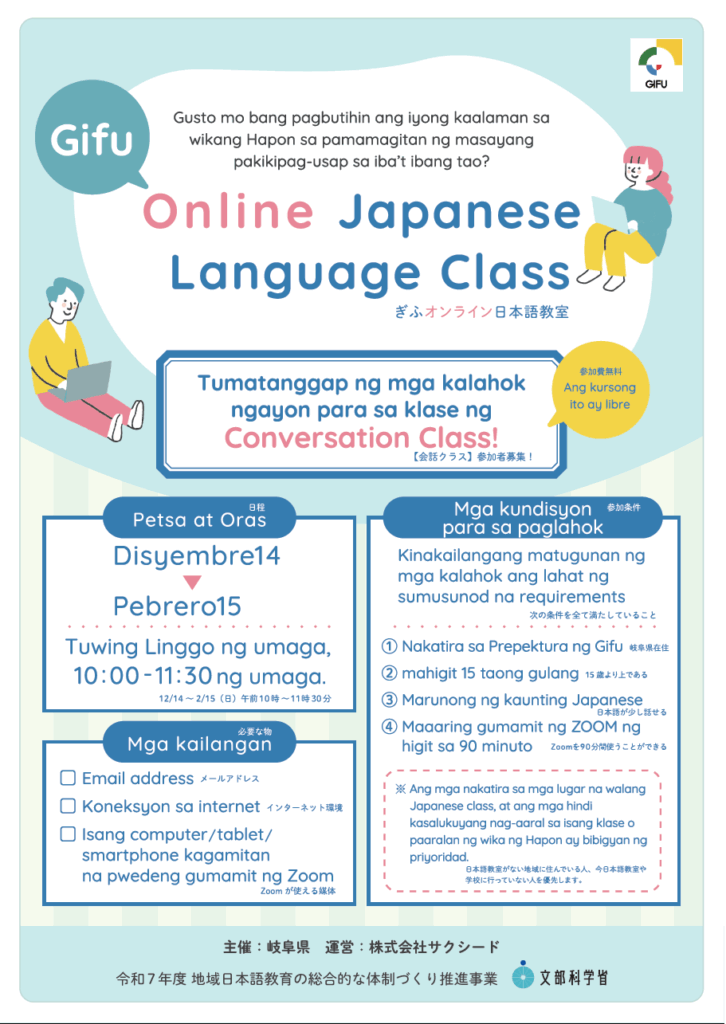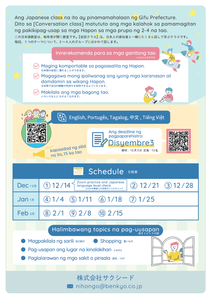 ※ Priority ang mga nakatira sa lugar na walang Japanese class o yung hindi pa uma-attend ng ganitong klase.