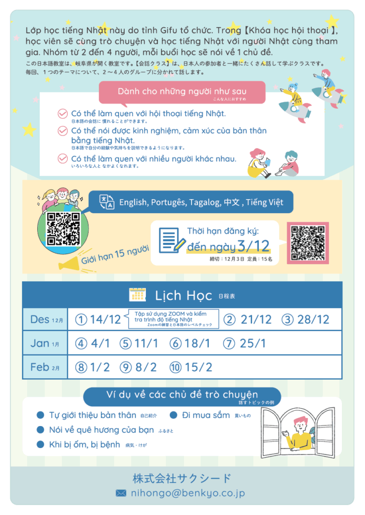 Lớp học tiếng Nhật này do tỉnh Gifu tổ chức. Trong 【Khóa học hội thoại】,