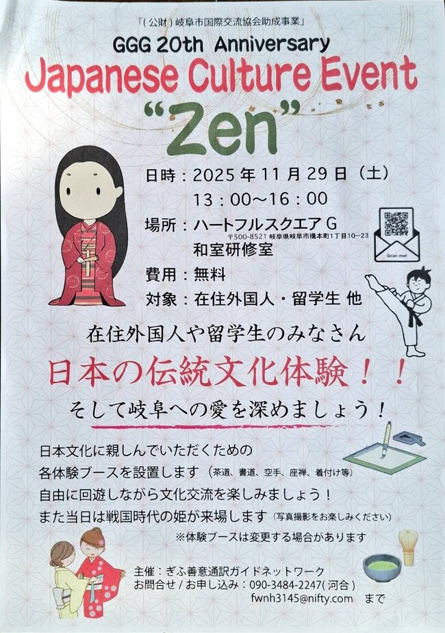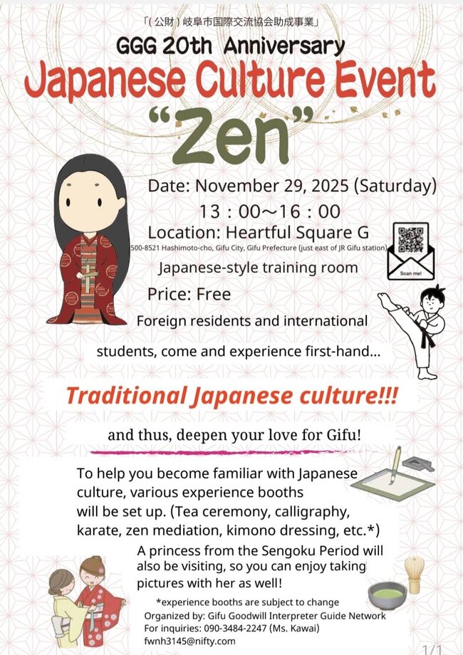 主 催:ぎふ善意通訳ガイドネットワークお申込み・お問合せ先は、チラシに記載の電話又はメールアドレスにお願いします。