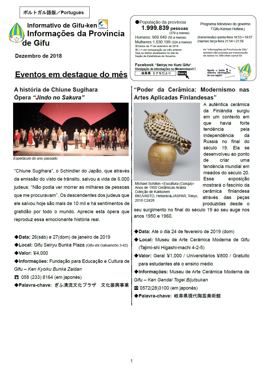 O Informativo da província de Gifu (Edição Dezembro de 2018) em português está disponível.