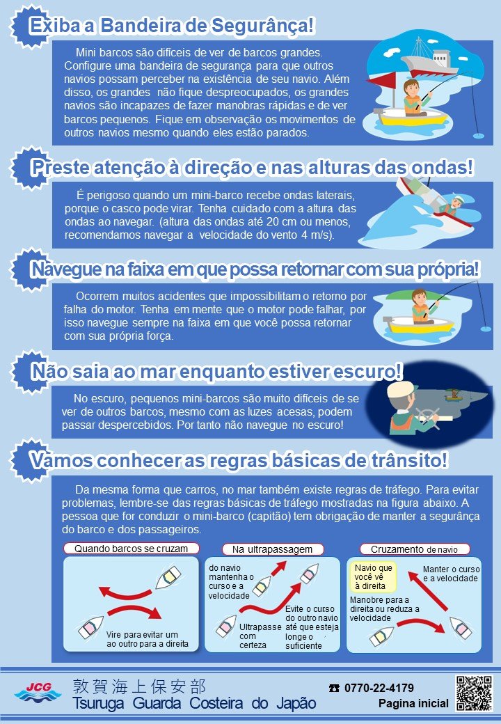 Para garantir que todos possam desfrutar de atividades de lazer marítimo com tranquilidade, o Departamento da Guarda Costeira de Tsuruga solicita o seguinte: