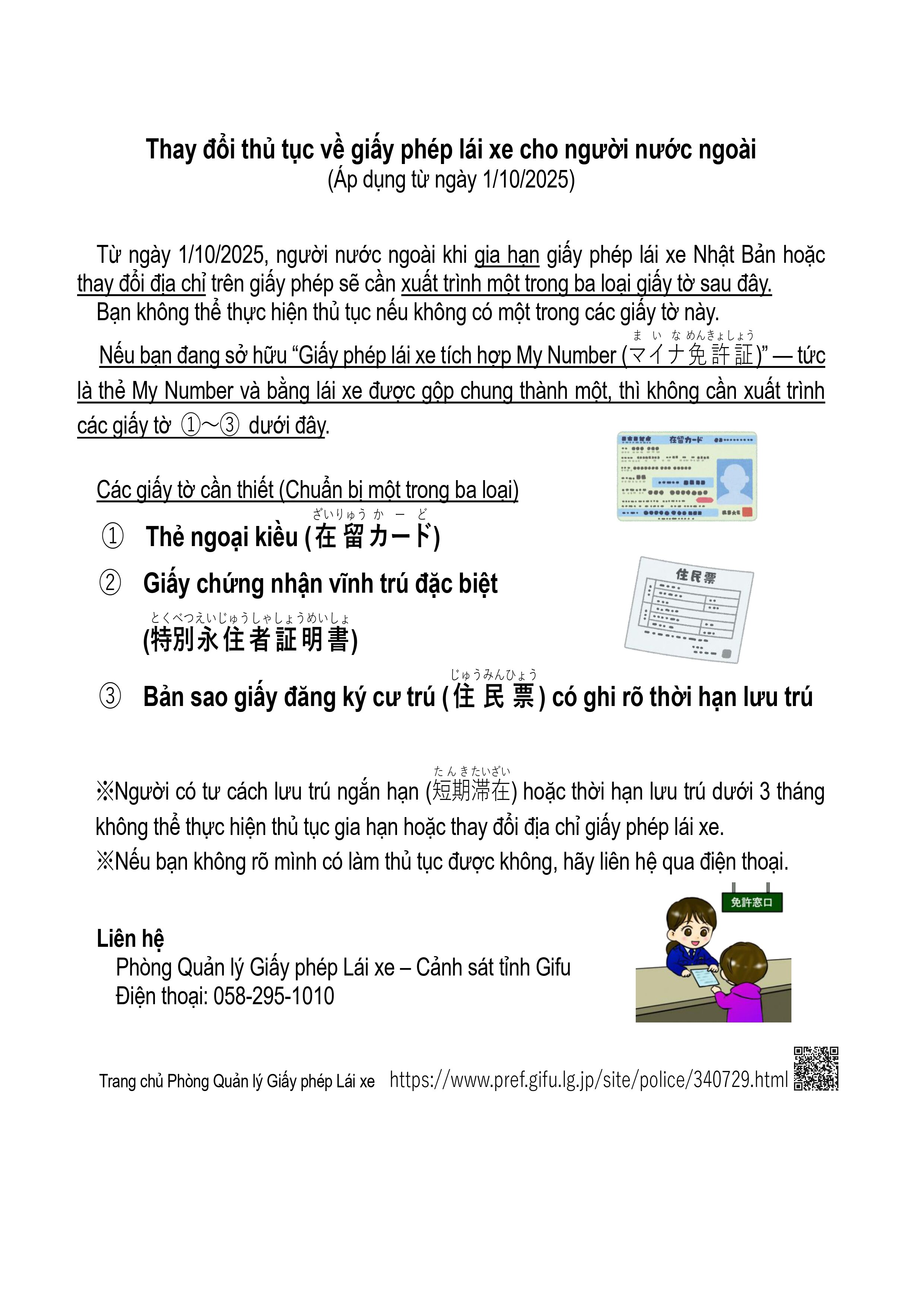 Người nước ngoài khi gia hạn giấy phép lái xe Nhật Bản hoặc thay đổi địa chỉ trên giấy phép sẽ cần xuất trình một trong ba loại giấy tờ sau: